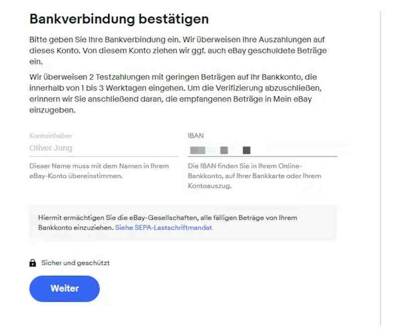 ② 若您是欧洲站卖家,请参考下图,将收款信息填写至您的eBay后台。