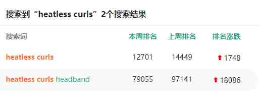 在亚马逊平台,这款产品也受到了欢迎。由于成本和门槛较低,在亚马逊已经有众多卖家在销售这款产品,相关搜索结果超过了1000,价格多数在10-15美元之间。在亚马逊的搜索词排名中,“heatless curls”的排名也在上升。
