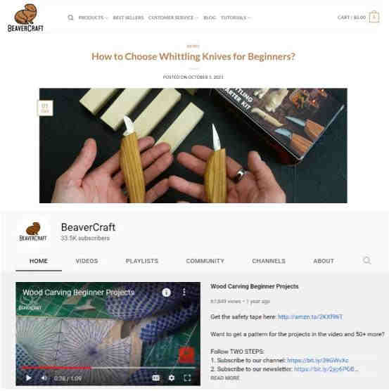BeaverCraft制作的站外优质内容包括社交媒体的官方账号发帖、视频及博客,内容主题是发烧友感兴趣的深度内容,如工具对比、雕刻教程。这样的内容由于质量高、关键词精准,吸引了不少精准自然流量。