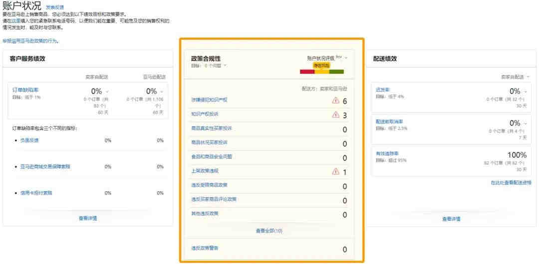 如何查看:卖家平台 > 绩效 > 账户状况 > 政策合规性