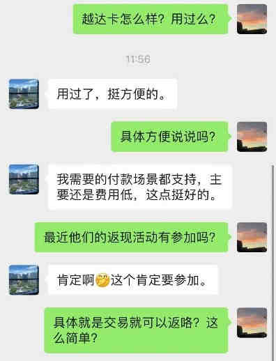 还没开通越达卡的朋友也别着急,返现活动针对越达卡新老用户开放,新申请的越达卡用户也可以薅!具体如何开通可以直接咨询你们的客户经理。