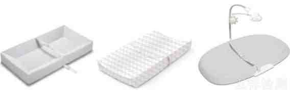 尿布台配件可以安装在婴儿床或游戏床上,使后者变成尿布台使用,其通常具有坚硬的框架,侧面和/或底部由柔软的织物或网眼材质包围。