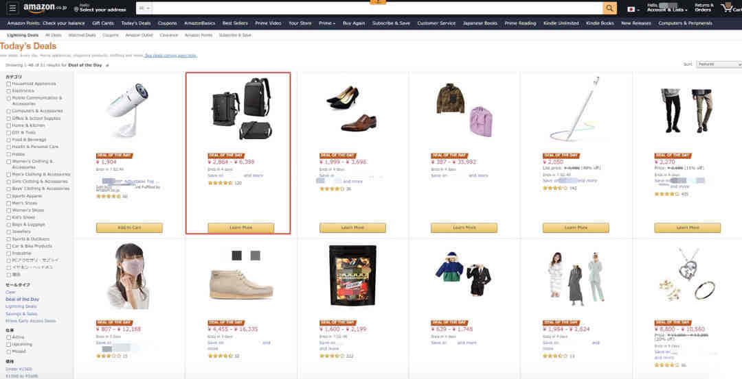 日本站时尚品类周末促销活动-镇店之宝(DOTD)的展示位置如下: