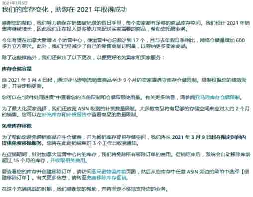 不过,加拿大站却收紧了发货限制。近日,亚马逊加拿大站发布了关于库存变化的公告: