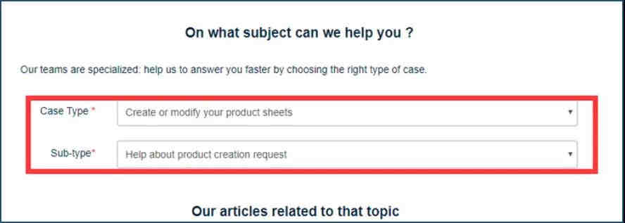 2,Case Type选择“Create or modify your product sheets”,如下图:
