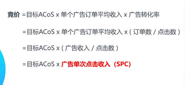 • 竞价 = 目标ACoS x Rest of Search SPC