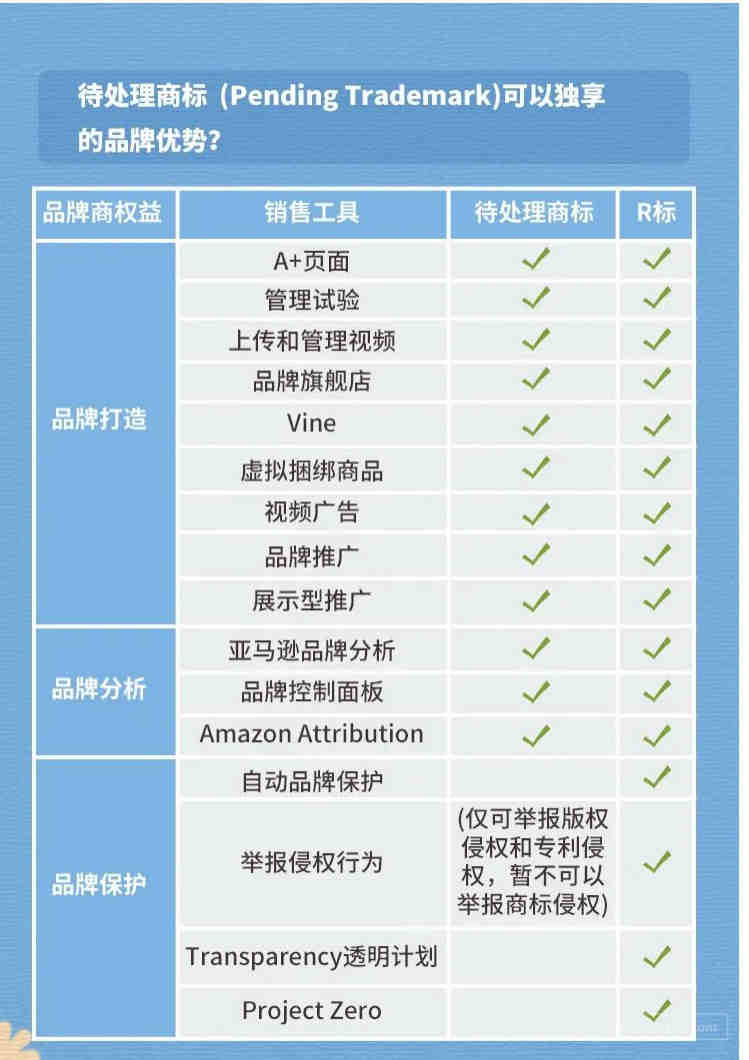 现在只需待处理商标(Pending Trade- mark),就可以进行亚马逊品牌注册,解锁品潜商专属功办能
