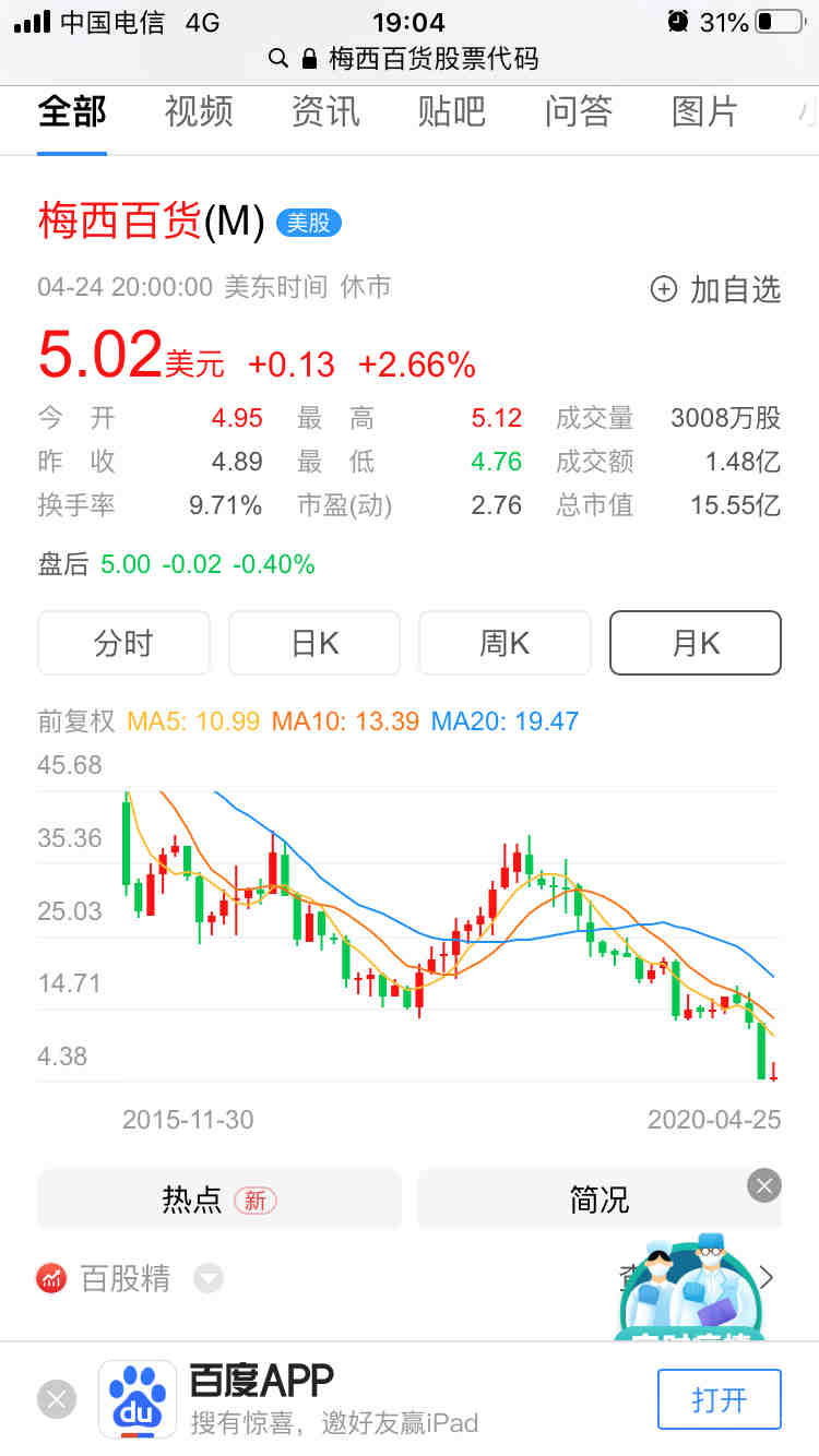 一涨一跌,说明了一切,梅西百货代表线下,亚马逊代表线上。亚马逊今年新用户增幅应该不少,现在国外疫情也慢慢控制住了,只要挺过去就是春天。国际物流的业务应该也小有增长[呲牙]