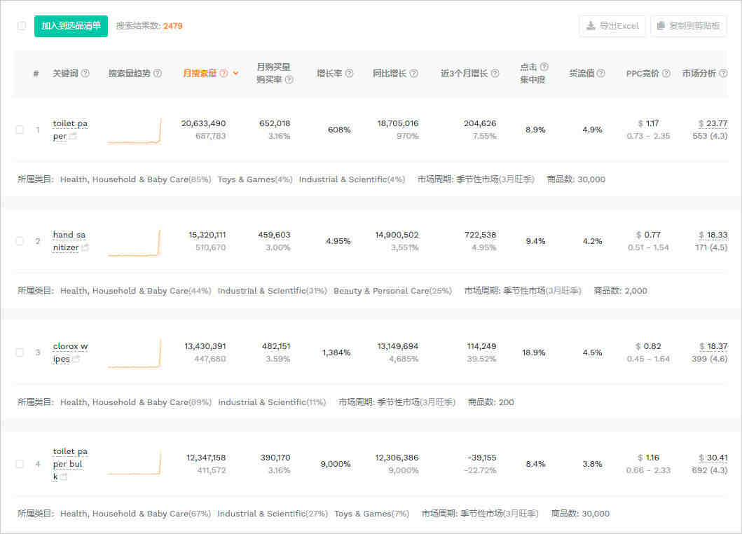 hand sanitizer bulk(散装洗手液):相比1月份的搜索量2月份增长了248%;