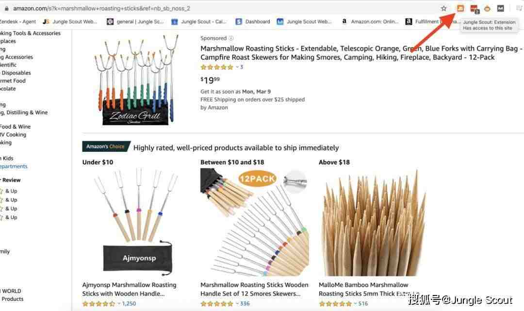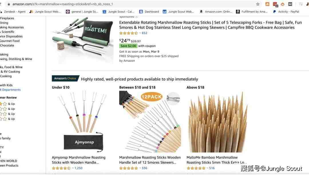 例如,当我们在亚马逊上搜索“棉花糖烧烤棒”时,这就是我们在SERP上看到的内容:
