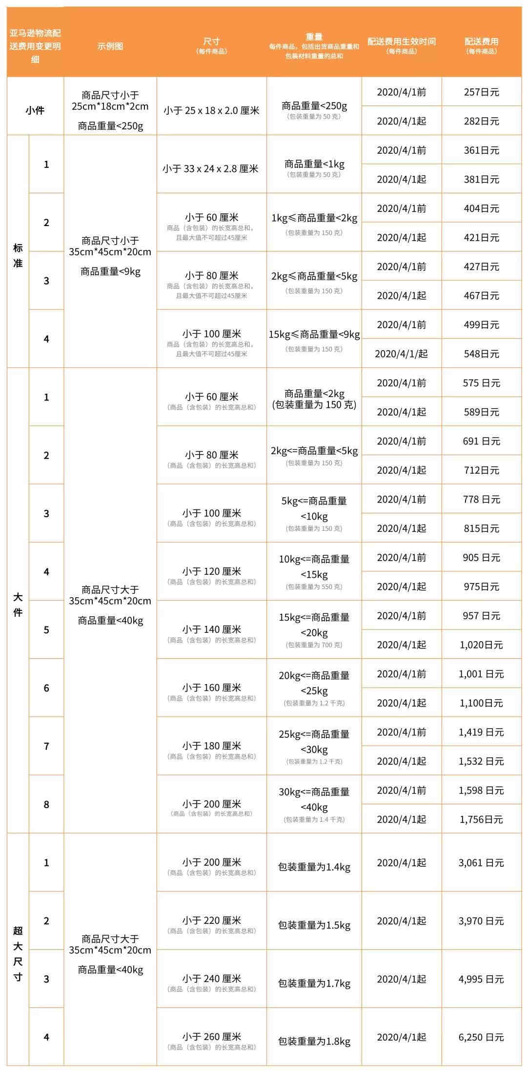 自2020年4月1日起,亚马逊物流轻小商品计划将会做出如下变化 :