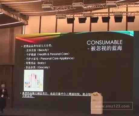 大会上还有一位嘉宾分享亚马逊消费品品类的选品,蔚蓝实业的CEO,大W。