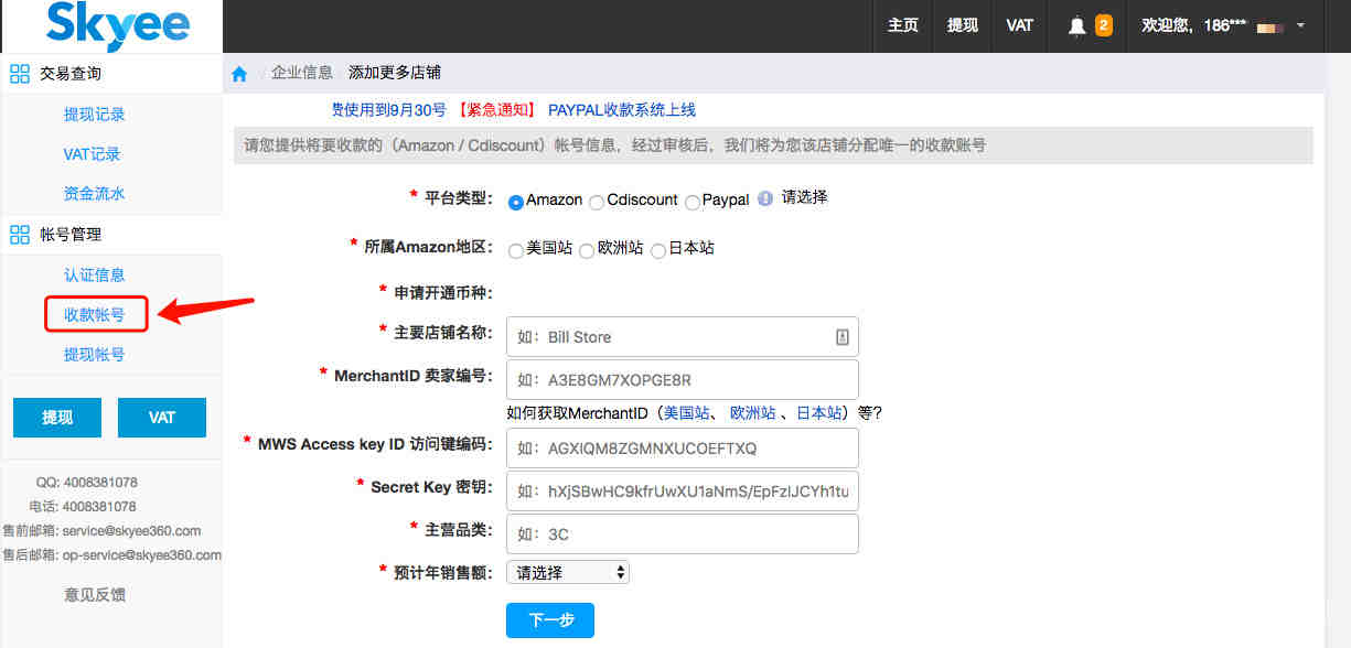 9.接下来, 就可以使用Skyee收取绑定店铺的资金了