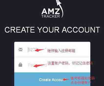 ⑤继续输入注册邮箱,设置Amztracker账户密码,然后点击Create Account,账户注册完成