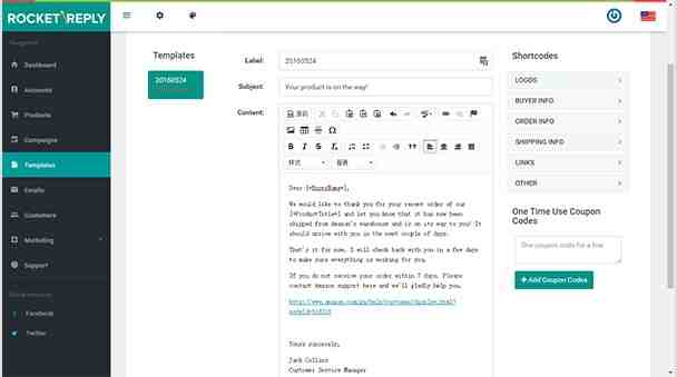 ⑧Rocket Reply自动维护订单和用户 轻型亚马逊卖家CRM管理系统,通过自动跟进订单并提升用户体验,帮助卖家减少产品差评、增加VP评论数量、培养账号Feedback等级和加强用户关系维护等。