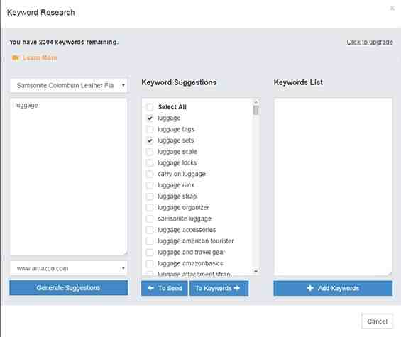 ⑥Keyword Research关键词搜索 卖家可利用输入的种子关键词找出其他相关或长尾关键词,关键词数据库来源于谷歌和亚马逊用户历史搜索大数据,直接反应用户的真实搜索习惯,提高关键词设置的精准度。