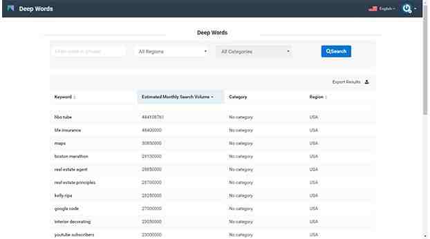 ⑦DeepWords关键词深度规划 通过谷歌和亚马逊用户历史搜索的大数据,为亚马逊卖家提供相关关键词的历史搜索量数据来实现产品关键词设置的深度优化,进一步提升Listing的搜索流量。