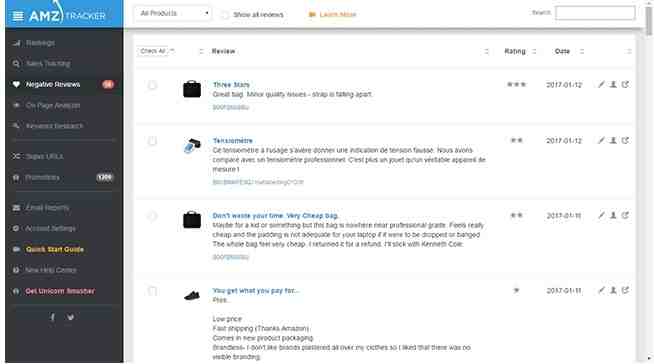 ⑨Negative Reviews中差评管理提示 提高卖家店铺运营效率,同时监控多站点、多店铺和多Listing的每日中差评数据,及时反馈,提醒卖家跟进产品中差评管理,从而维持产品Review的高星级(高转化率)
