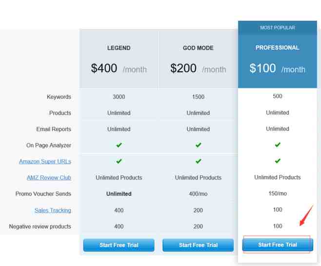 ③根据自身情况选择对应套餐的Start Free Trial(建议100美金)