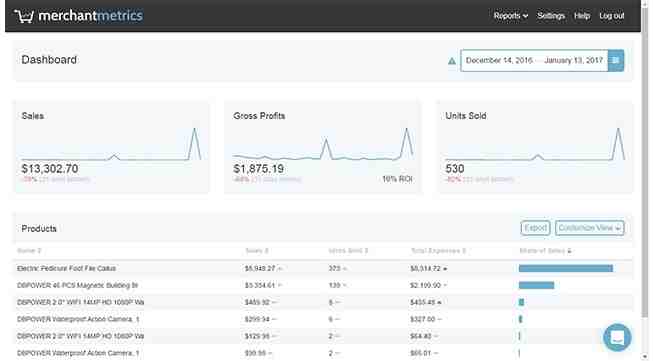 ⑤MerchantMetrics卖家后台数据分析 卖家店铺后台销售数据系统分析工具:销售数据、库存预警、营销投入产出等核心数据分析,帮助卖家实现数据化店铺运营,了解每一分钱所带来的收益。