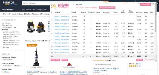 ②Unicorn Smasher市场调研工具 免费的谷歌浏览器插件,用于调研亚马逊某一品类(或关键词)下产品的市场容量和卖家竞争情况,帮助卖家在选品时更加准确地掌握市场情况,从而制定正确的选品策略