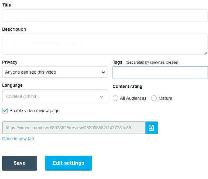 很快就会发现视频上传完成了,然后你可以设置一些视频的一些信息,就这么简单,一个视频就发布完成,可以用在你自己的网站或者分享给朋友了。
