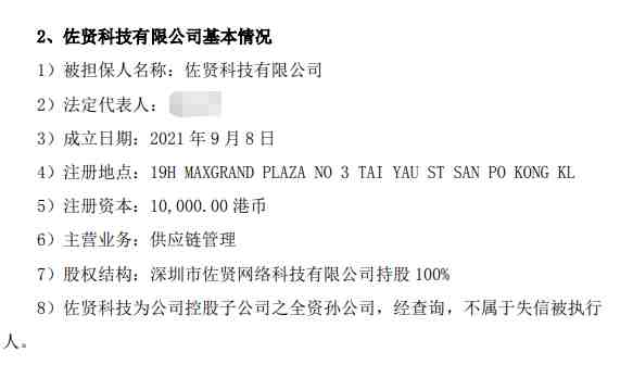递四方给佐贤科技账期信用额度金额为800万元,