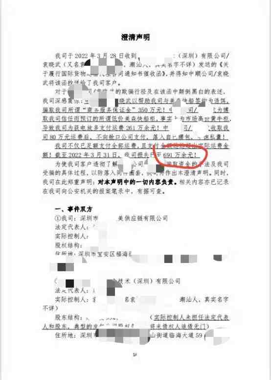 受害的货代公司发布了澄清声明,