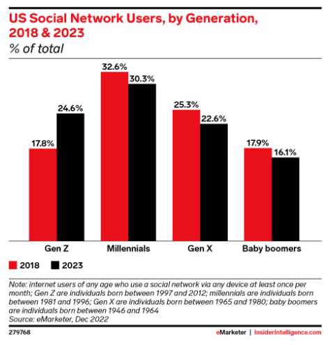 千禧一代目前占美国社交媒体用户的30.3%,高于其他任何一代人,这一人数比到2026年都依然碾压其他任何一代人。