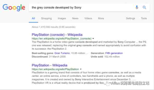 例如,假设我们搜索“the grey console developed by Sony”。谷歌会寻找包含术语“grey”、“console”、“developed”和“Sony”的页面。