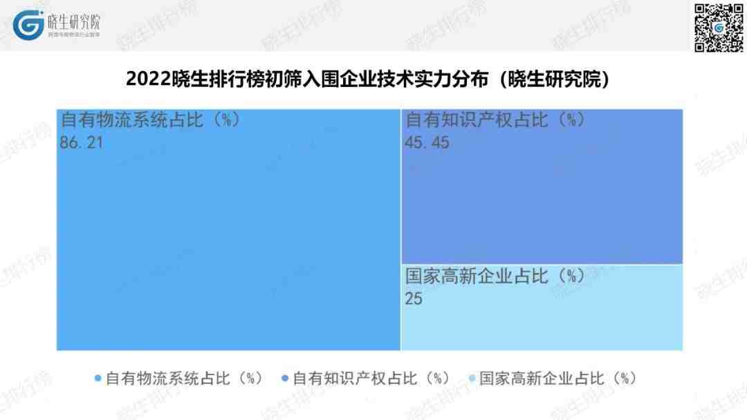 此外,此次初筛入围的物流企业中,85%以上的企业自有物流系统,将近一半的企业自有知识产权,四分之一的企业是国家高新企业。
