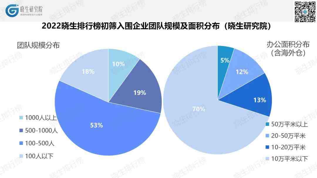 此次初筛入围企业办公面积(含海外仓)总和700多万平方米。其中,面积达到50万平方米以上的企业为3家,这3家企业面积总和约为280万平方米,占总面积的40%;面积在10-50万平米之间的企业占比为25%,面积总和约为340万平方米,占总面积的48%;70%的企业面积小于10万平米,这些企业面积总和约为90万平方米,占总面积的12%。