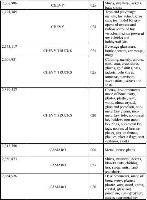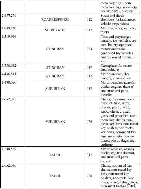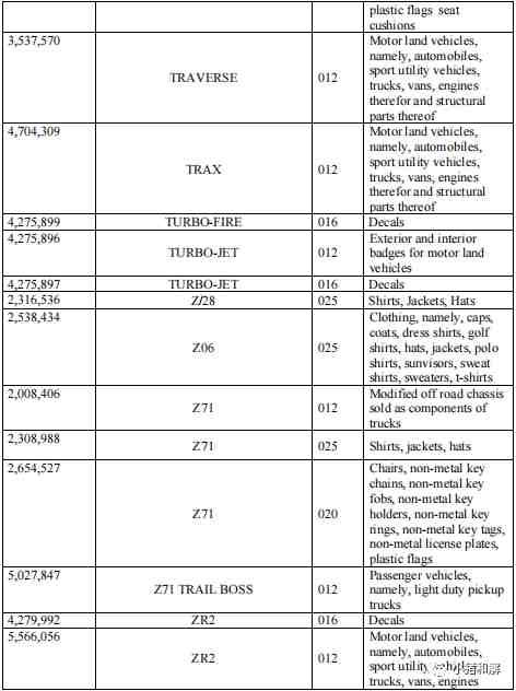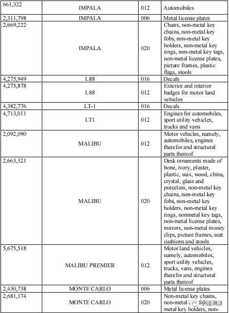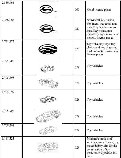 GMC,Buick别克、Chevrolet雪佛兰、Cadillac凯迪拉克,庞蒂亚克GTO跑车 这些已经明显在取证中,以下是部分取证产品,更多商标,可以根据小猪和解写的商标查询方法去排查。