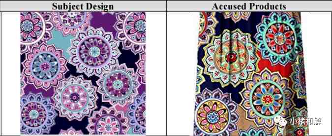 Universal Dyeing & Printing是一家印花加工厂,除了拥有丰富多彩的印花图案之外还能提供私人订制商品。本次案件版权号No. VA 1-822-420 用到以下印花有侵权被告风险。