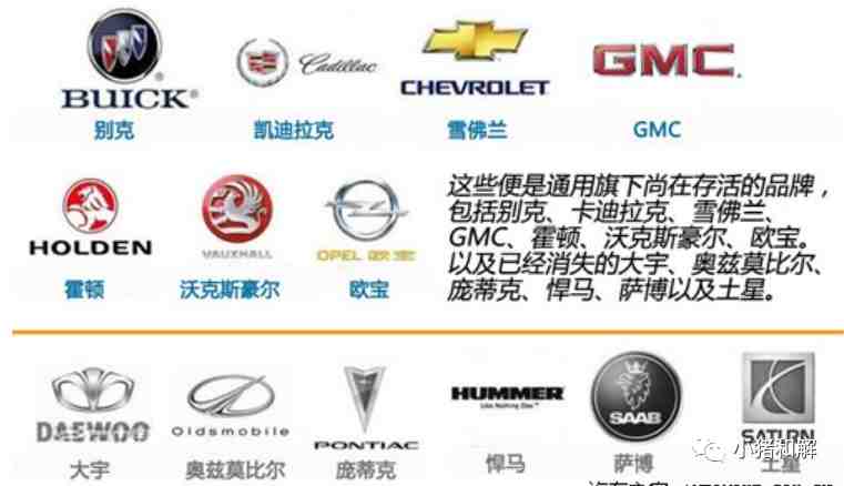 总结了一下GM通用汽车旗下品牌, 它们包括:GMC,Buick别克、Chevrolet雪佛兰、Cadillac凯迪拉克、庞蒂亚克GTO跑车,Holden霍顿,欧宝与沃克斯豪尔 以及曾经隶属通用旗下,如今已经消失的:庞蒂亚克、悍马、萨博、土星、大宇和奥兹莫比尔。