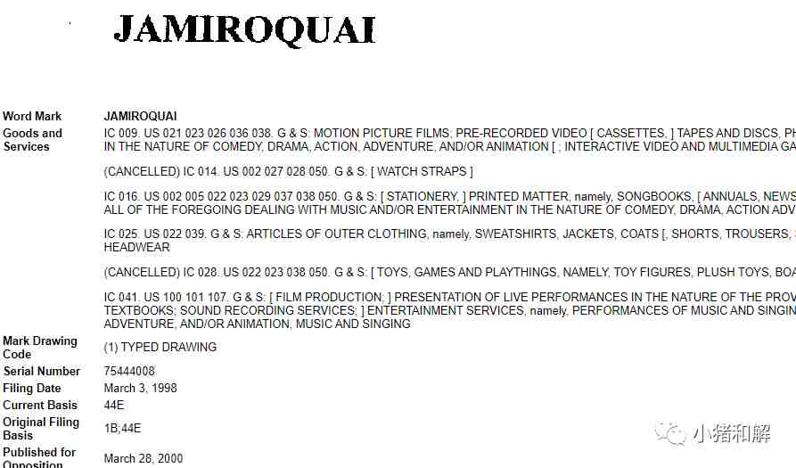5.侵权预警产品:Jamiroquai乐队 英国爵士乐队 用到商标Jamiroquai 有侵权被告风险。尚未立案。