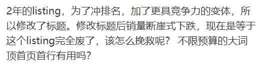 最近小V在知无不言上看到了一个帖子,卖家在修改标题后销量断崖式下跌,问如何挽救。