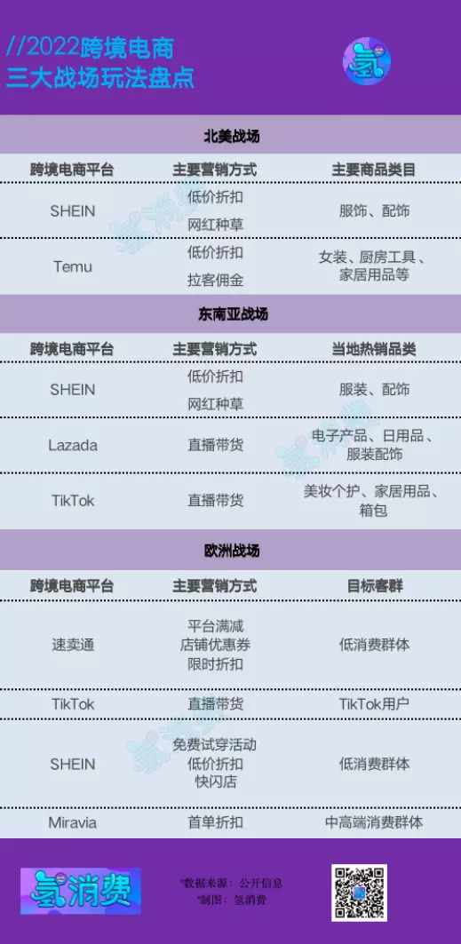 受通货膨胀的影响,北美市场物美价廉的商品受到热捧,Temu、SHEIN得以崛起,而在年轻人居多的东南亚,拥有直播带货基因的TikTok、Lazada得以大展身手……