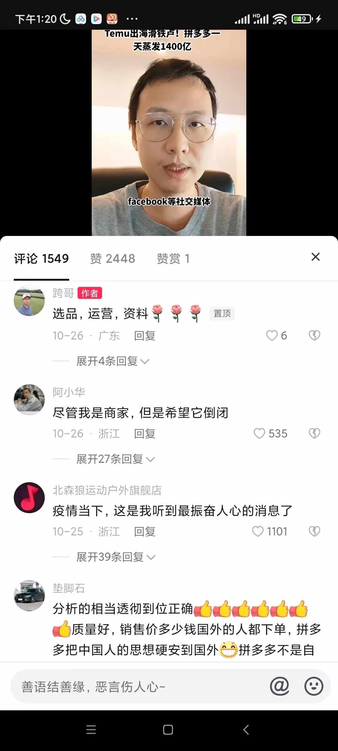 视频评论区1500条评论几乎全部是讽刺多多和Temu