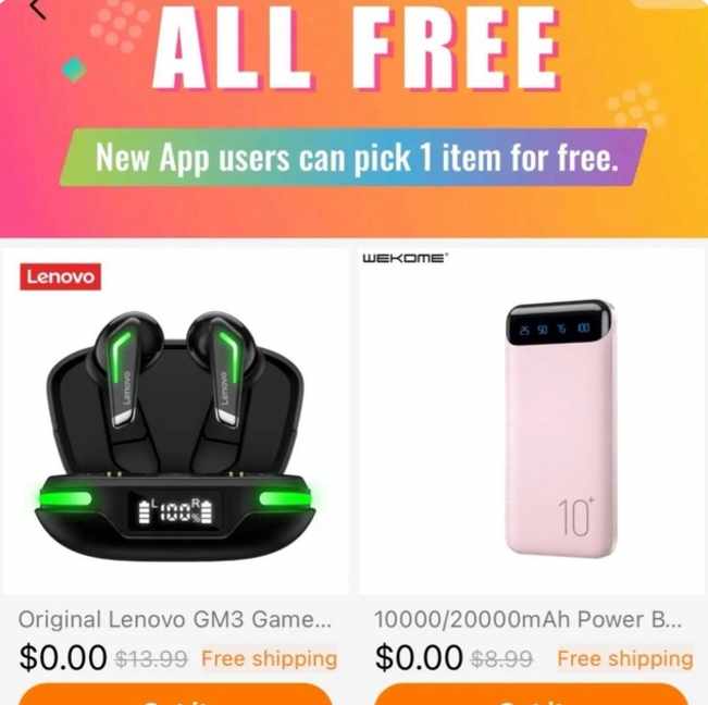 (2)新用户可以免费获取一件产品,例如下面的耳机和充电宝: