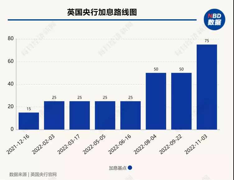 英国央行罕见加息75个基点3日,英国中央银行英格兰银行宣布加息75个基点,将基准利率从2.25%上调至3.00%,为2008年11月以来的最高水平,同时也创下1989年以来的最大升息幅度。