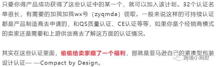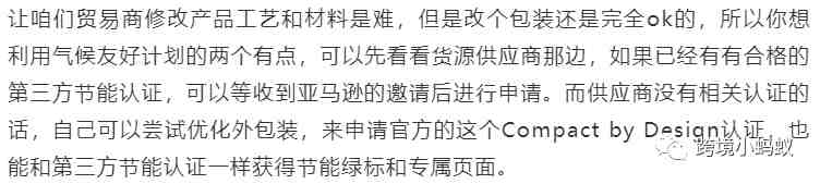 在其他可持续认证中,大多数都需要对产品的制造排放、性能、可持续用料等等提出要求,真要实施起来还是比较难的,而这个亚马逊自己的紧凑型包装设计认证就不一样了,只要你对包装的大小尺寸做出优化,减少包装的使用量,或者直接换成更加环保的包装,就有机会通过认证。