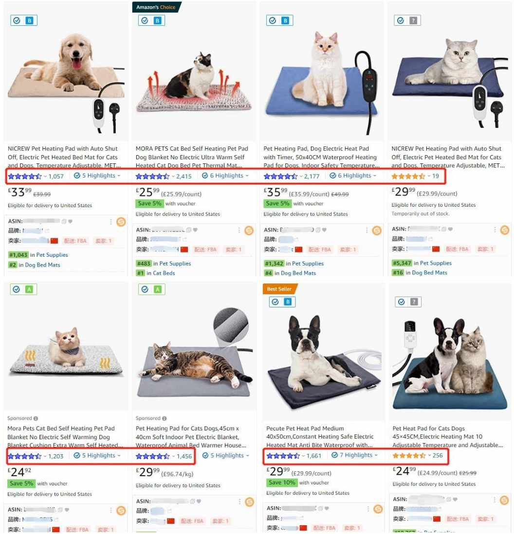小编搜索了英国站的加热宠物垫(heated pet bed),共192条相关结果,销量大多都不错;