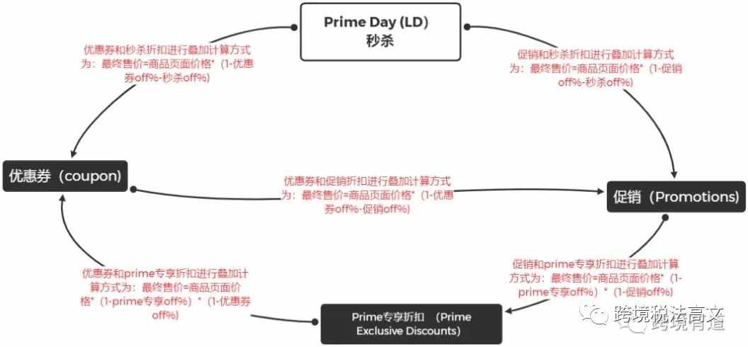 关于优惠券,prime专享折扣,promotions以及LD这四种折扣一起设置的话,优先扣除哪一种,这里给大家简单罗列一下亚马逊各种折扣码叠加扣除方式: