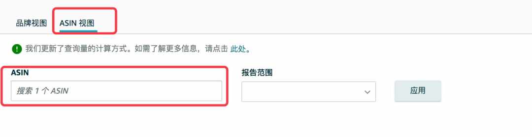 2.选择ASIN视图,输入ASIN,选择报告范围,点击应用