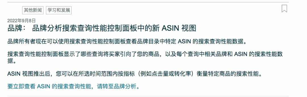 品牌所有者现在可以使用搜索查询性能控制面板查看品牌目录中特定 ASIN 的搜索查询性能数据。搜索查询性能控制面板显示了哪些查询将买家引向了您的商品,以及每个查询中相关品牌和 ASIN 的搜索性能数据。ASIN 视图推出后,您可以在所选时间范围内按指标(例如点击量或转化率)衡量特定商品的搜索性能。