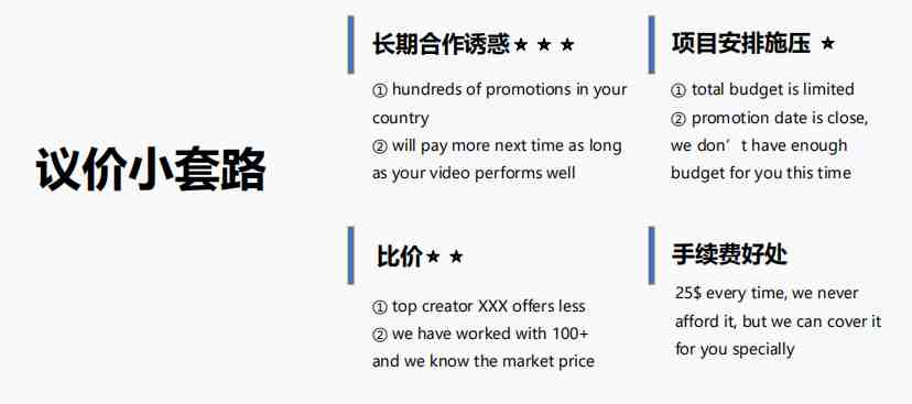 在与网红合作议价时,也有一些小套路可以使品牌得到比较满意的合作价格。