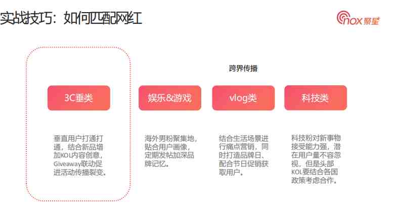 具体匹配方式可以参照Nox聚星手把手带你做网红营销(第二弹):怎样去寻找并选择最合适的网红,手把手带你匹配合适网红。
