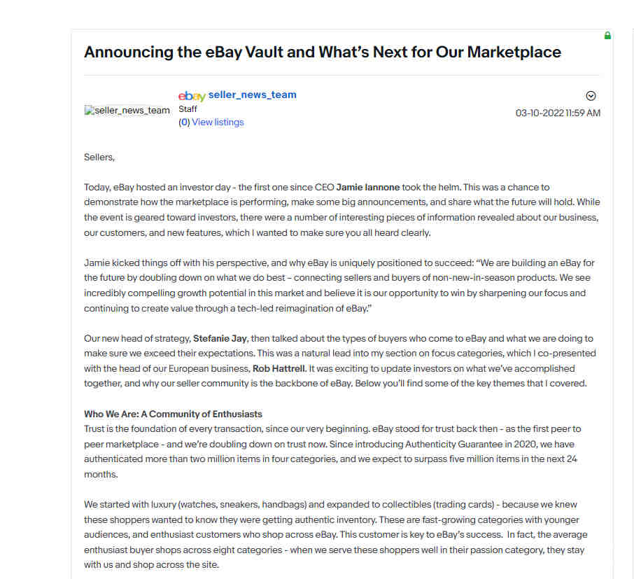 eBay123获悉,根据eBay发布的最新公告显示,2022年eBay将推出数字钱包、eBay Vault和一些新的工具 ,以助力卖家销售。
