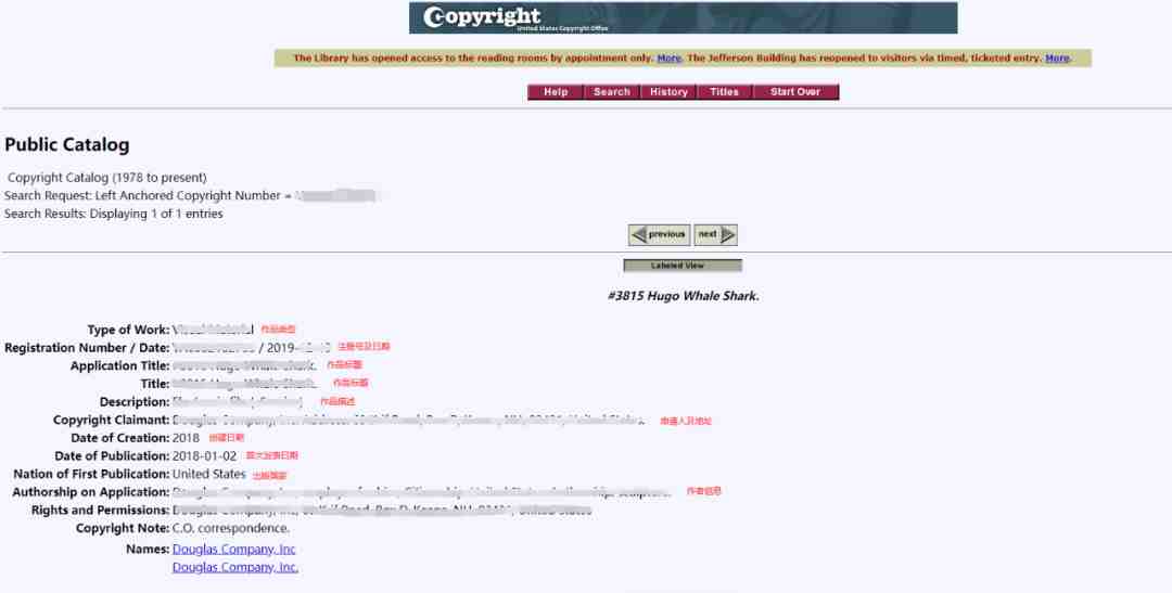 一般邮件中都会包含版权侵权,投诉方的版权注册号,有了这个注册号,我们就可以查询版权的信息。以下是查询的步骤: